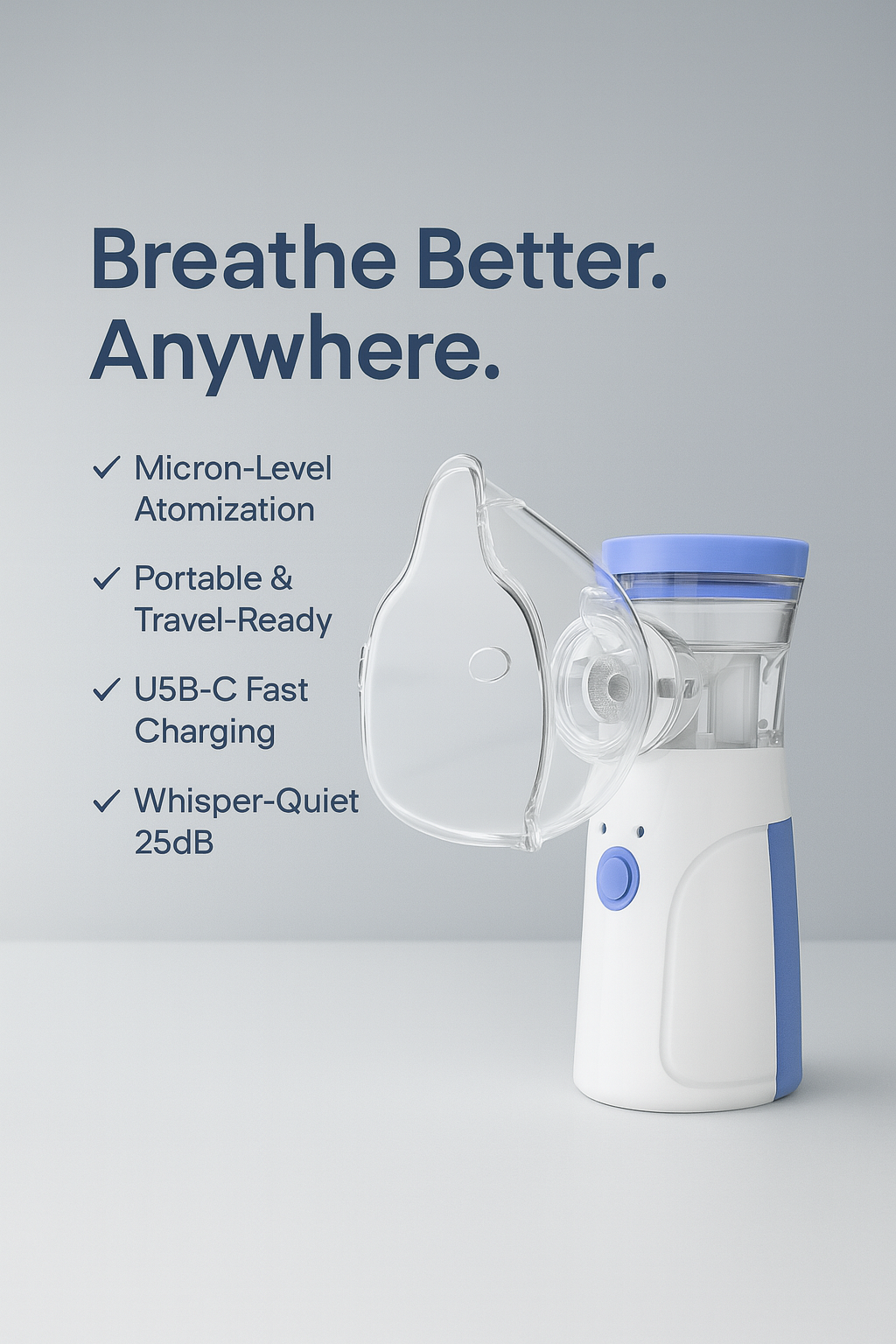 Micron-level atomization, whisper-quiet comfort, and all-day portability — engineered to help you breathe freely wherever life takes you.
